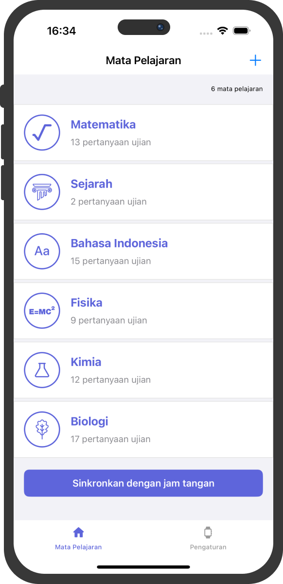 Instal aplikasi di iPhone Anda, tambahkan mata pelajaran, buat daftar pertanyaan dan topik, lalu tuliskan jawabannya. Anda dapat melakukannya langsung dari aplikasi – cepat dan nyaman.
