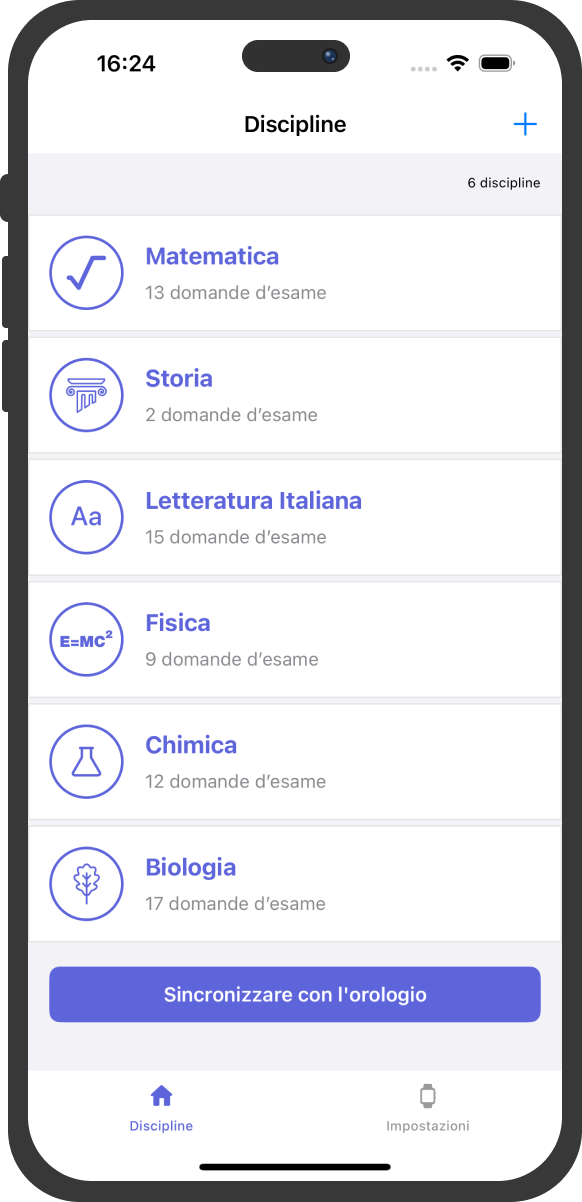 Installa l'applicazione sul tuo iPhone, aggiungi discipline, crea un elenco di temi e domande e quindi scrivi le risposte. Coò può essere fatto direttamente tramite l'applicazione, in modo rapido e conveniente.