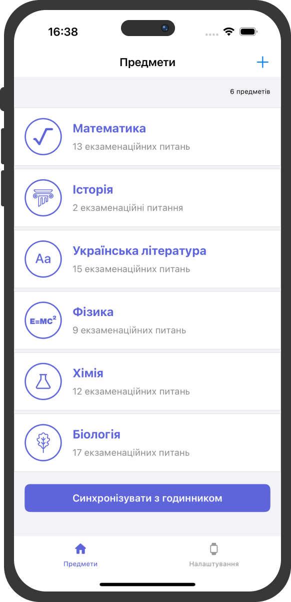 Встановіть додаток на iPhone, додайте предмети, сформуйте список питань і тем, а потім запишіть відповіді. Ви можете зробити це прямо в додатку – швидко та зручно.