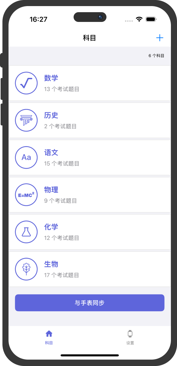 在 iPhone 上安装应用,添加科目,列出问题和主题,然后写下答案。您可以在应用中直接快速方便地完成此操作。